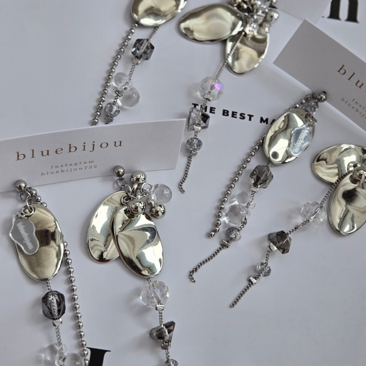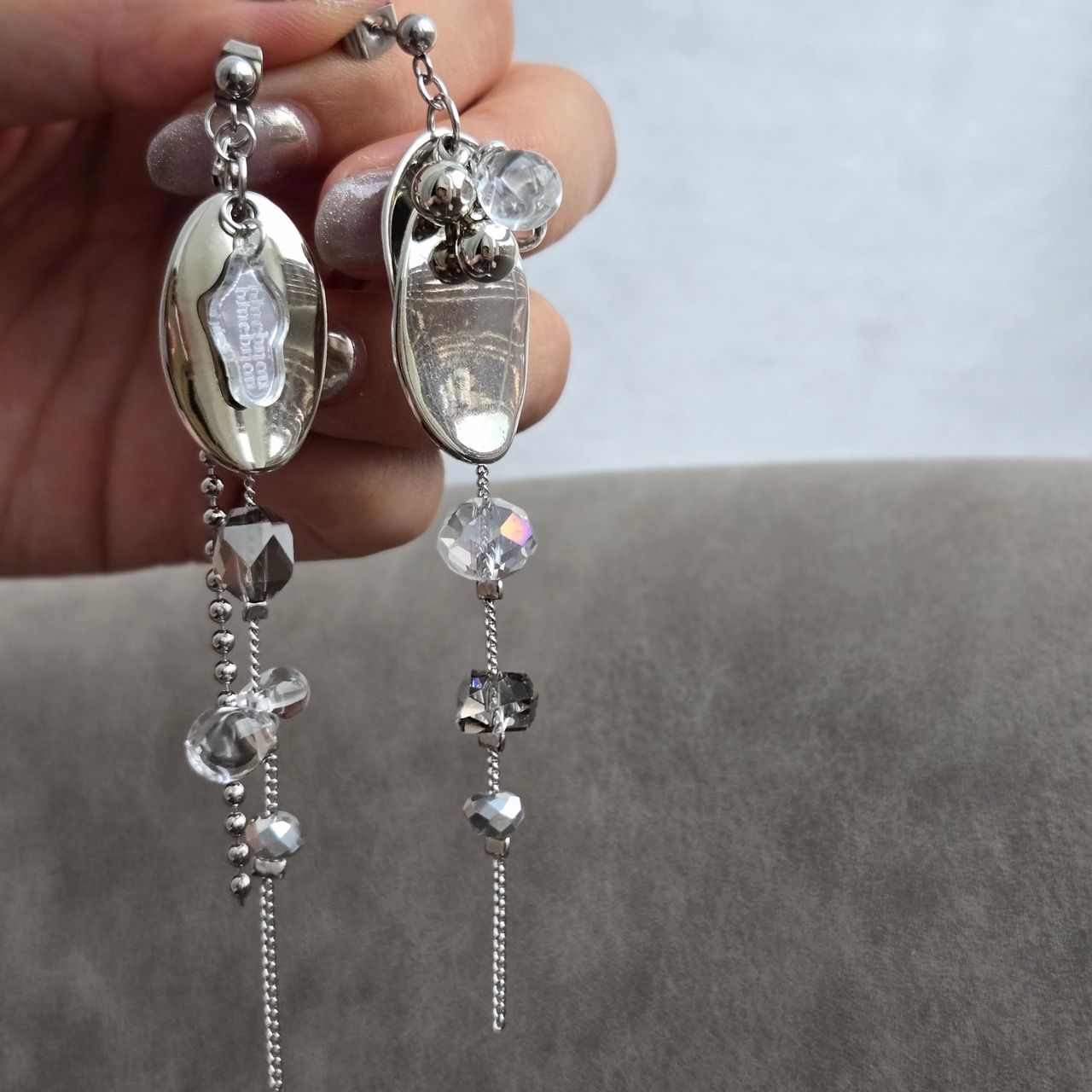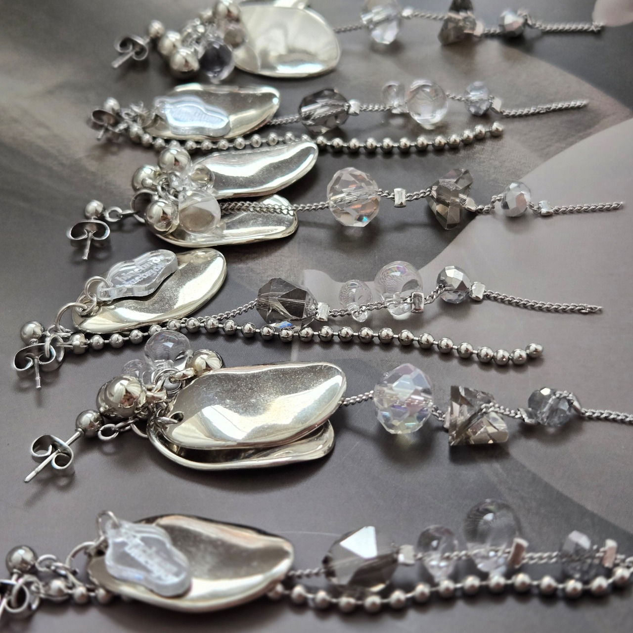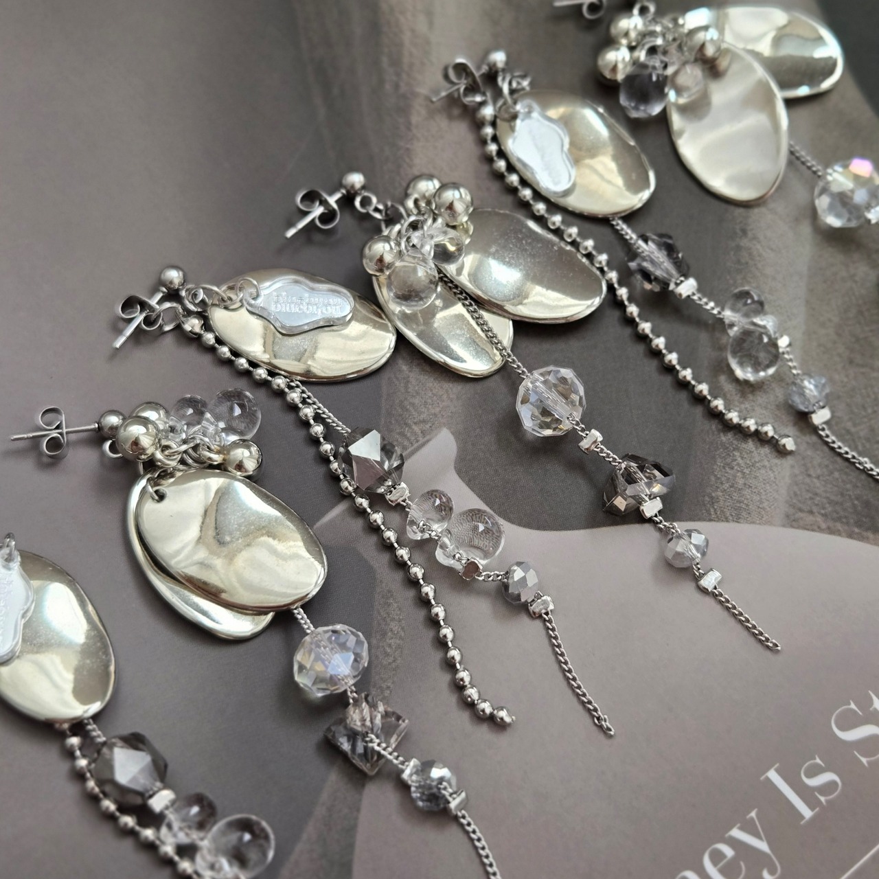 シルバー×ガラスビジューピアス
