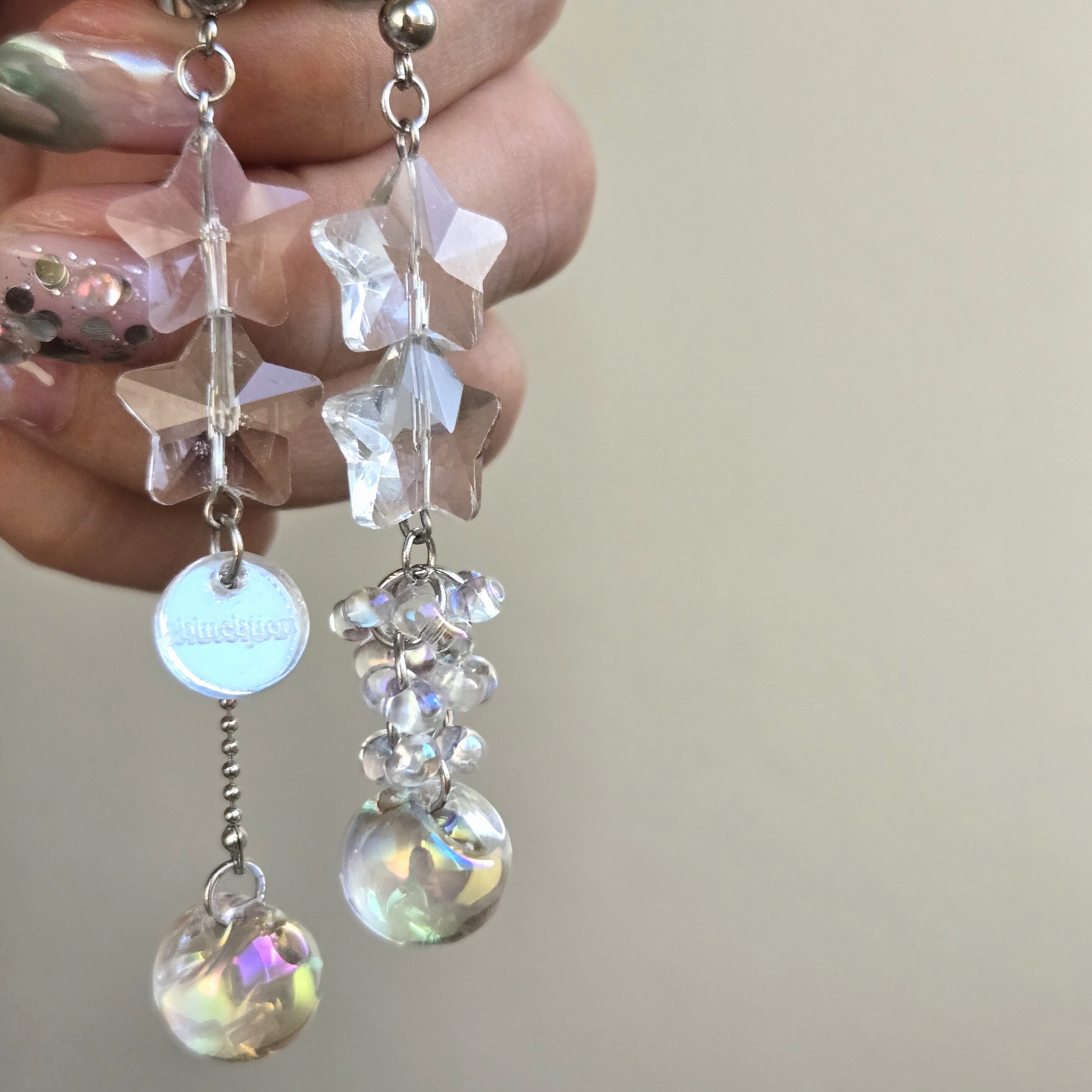 星Wガラスアシンメトリーピアス