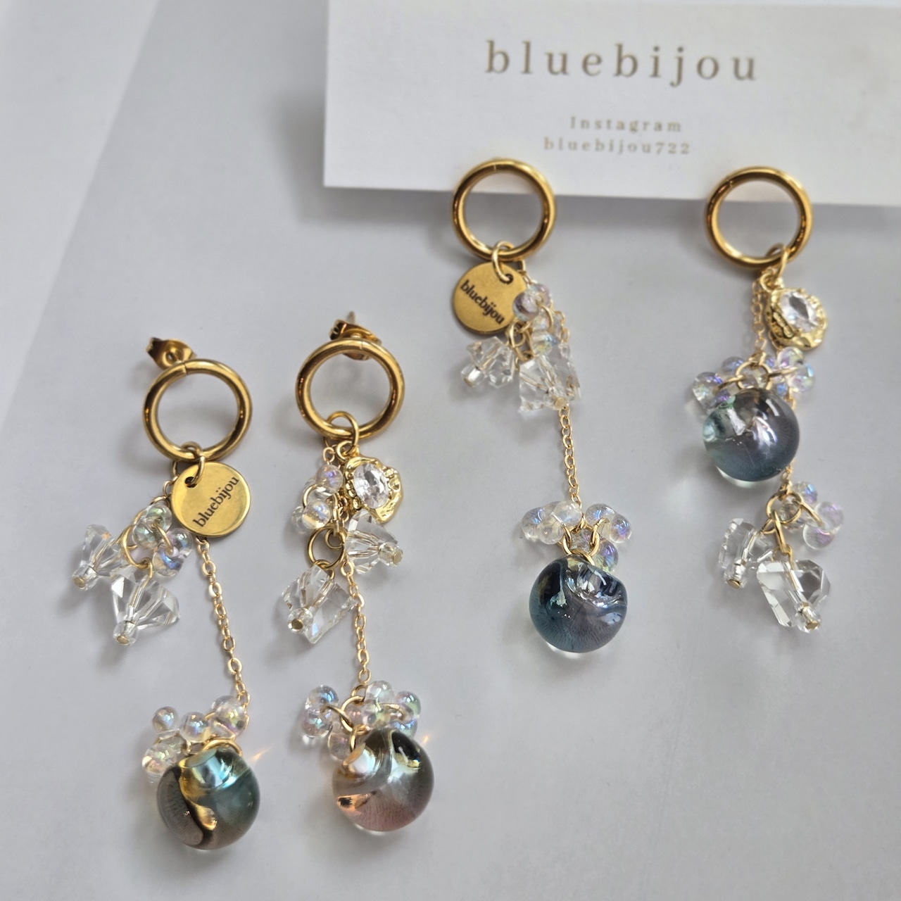 イヤリングにも変更可能ですが、トップの丸い部分がなくなり普通のネジバネ式イヤリングとなります。変更ご希望の方は備考欄に記載をお願いいたします。