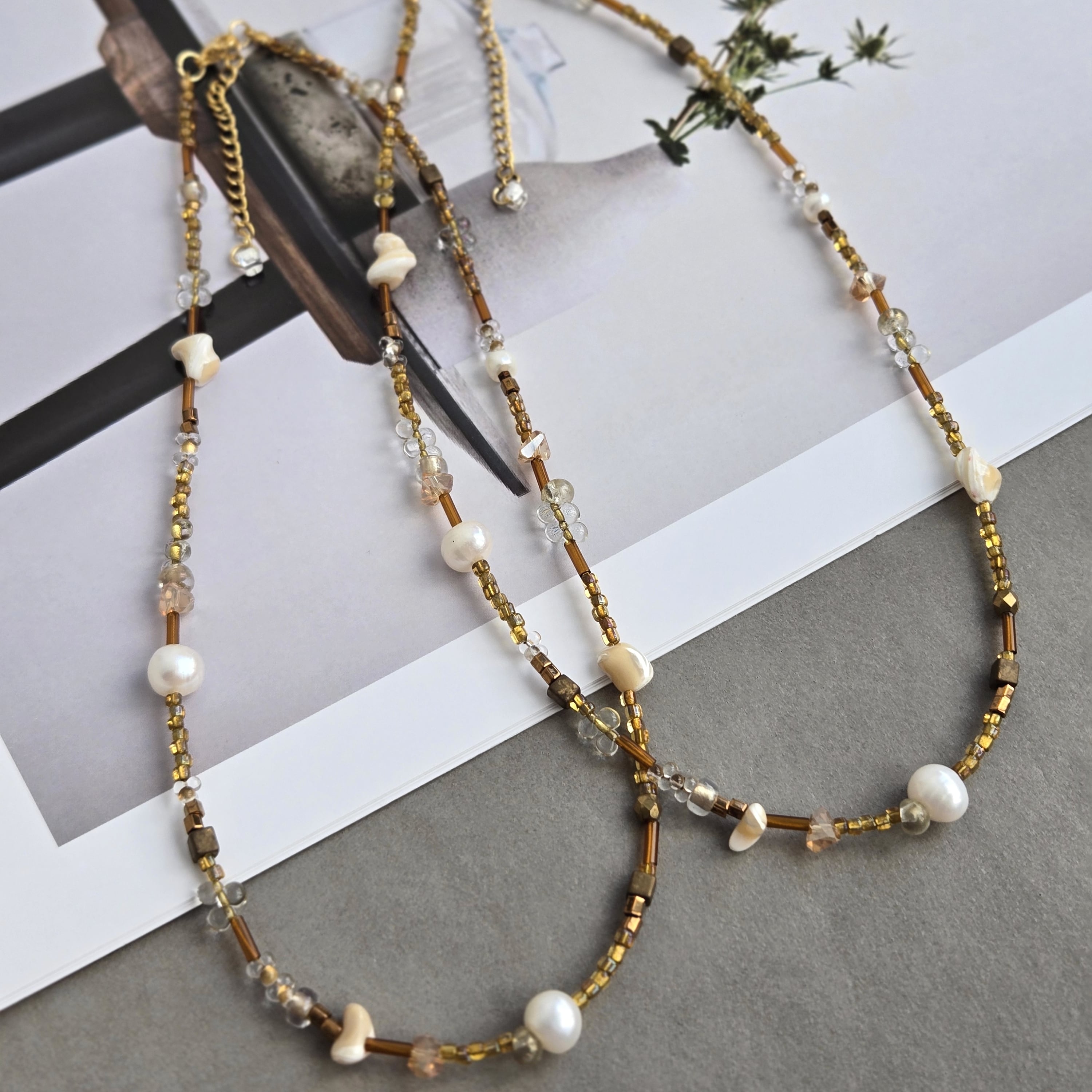 ビーズ×淡水パールネックレス